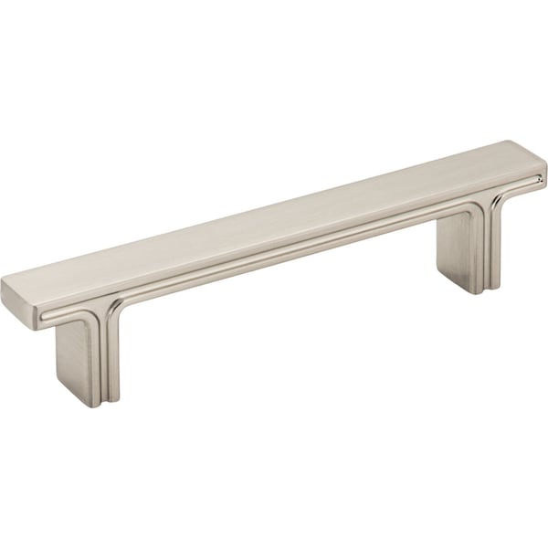The intricate decorative line detail and soft edge of this 5-1/8" overall length modern Satin Nickel Anwick cabinet pull create a unique and unrivaled contemporary look. Pair this Jeffrey Alexander pull with a coordinating square or rectangle knob, or mix in five other pull length options to fit even the widest drawer. This stylish collection is available in three additional alluring finishes to complement any modern or contemporary design. Each item is individually wrapped to protect the item from damage. Attachment hardware is included.