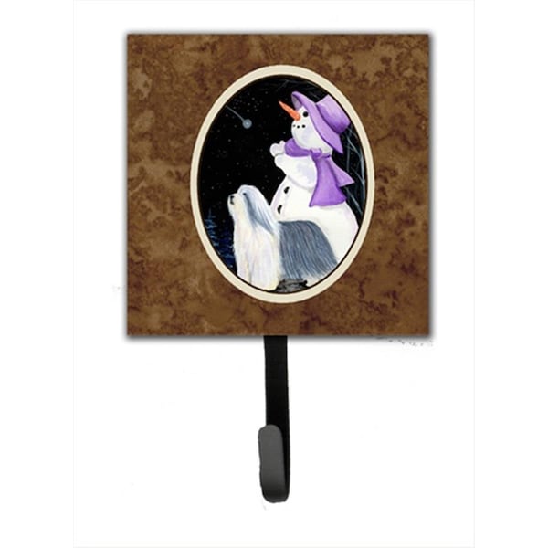 4.25 x 6 in. Snowman with Bearded Collie Leash Or Key Hook