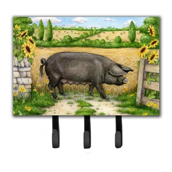 Black Pig with Sunflowers Leash or Key Holder