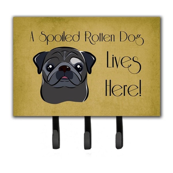 Black Pug Spoiled Dog Lives Here Leash & Key Holder