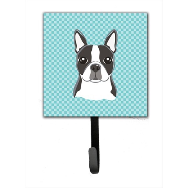 Checkerboard Blue Boston Terrier Leash Or Key Holder