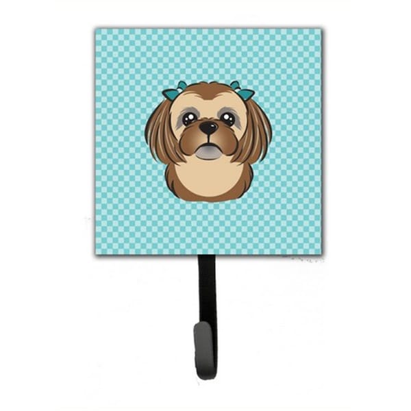 Checkerboard Blue Chocolate Brown Shih Tzu Leash & Key Holder