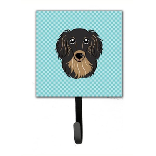 Checkerboard Blue Longhair Black And Tan Dachshund Leash & Key Holder