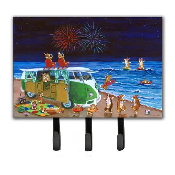 Corgi Beach Party Volkswagon Bus Fireworks Leash & Key Holder