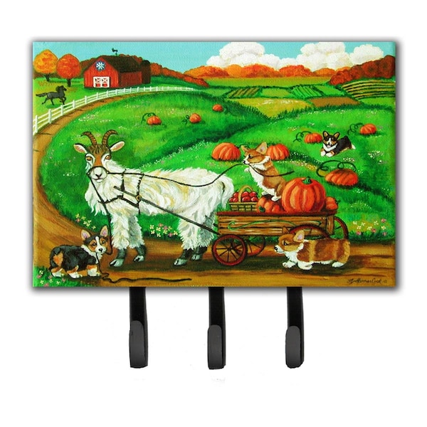 Corgi Pumpkin Ride With Goat Leash or Key Holder