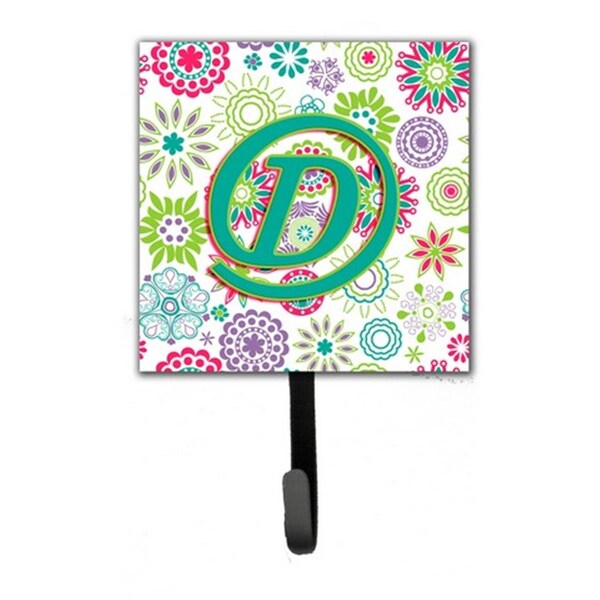 Letter D Flowers Pink Teal Green Initial Leash & Key Holder