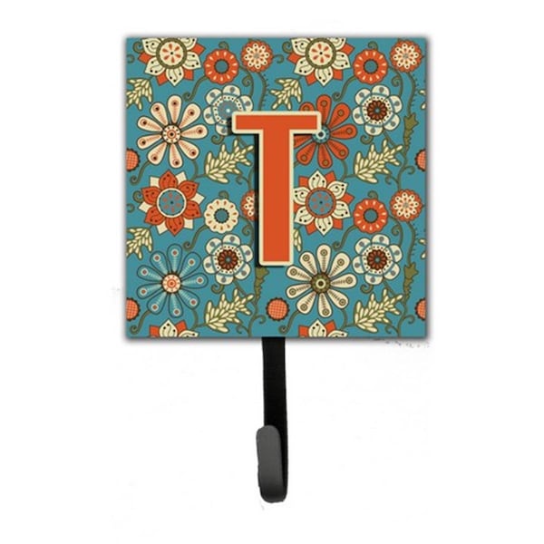 Letter T Flowers Retro Blue Leash & Key Holder