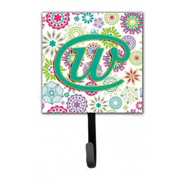 Letter W Flowers Pink Teal Green Initial Leash & Key Holder