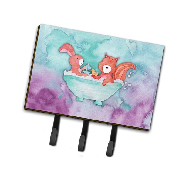Rabbit & Squirrel Bathing Watercolor Leash or Key Holder
