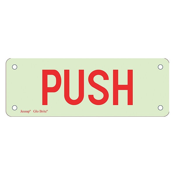 Safety Sign, Horizontal Rectangle, Number of Printed Sides 1, English, Sign Format Traditional OSHA, Sign Legend PUSH, Sign Legend Background Color Photoluminescent, Sign Legend Style Text, Sign Legend Character Height 7 in