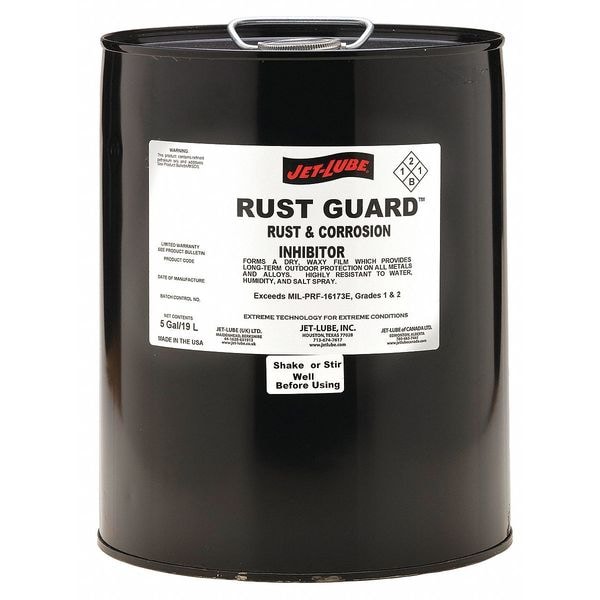 Corrosion Inhibitor, NSF Rating Not Rated, Dry Lubricant Film, Long Indoor Life Expectancy, Long Outdoor Life Expectancy, Moderate Removability, Min. Operating Temp. -20 Degrees F, Max. Operating Temp. 280 Degrees F, Lubricant Container Pail, Container Size 5 gal, Rust-Guard, Specific Gravity 0.85, VOC Content 193.4 g/L, Flash Point Greater Than100, Standards Mil-PRF-16173E Grade 1 and 2