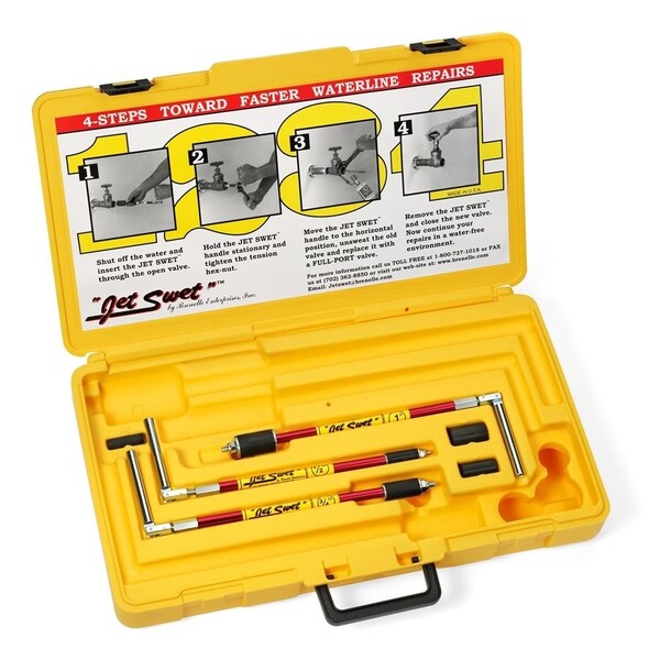 Jet Swets are used by going straight into any water line system and immediately plugging off the water to gain immediate control of the situation. No more waiting! You do the repair, including soldering, right over the Jet Swet, then take it back out, through your newly repaired fitting. Jobs that used to take hours are now done in a matter of minutes.