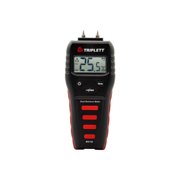 The triplett ms150 measures moisture content in wood 5 to 50% and other building materials 1.5 to 33%. Use pinless measurement 6 to 99.9% for non-invasive testing. Low, medium and high icons indicate moisture level and an audible indicator increases as the moisture level gets higher for quickly scanning large areas. A lock button freezes measurement on screen for hard to see areas. For home inspection, water damage restoration, lumber yards, painting, paper mills, textile, clothing manufacturing, and other industries.