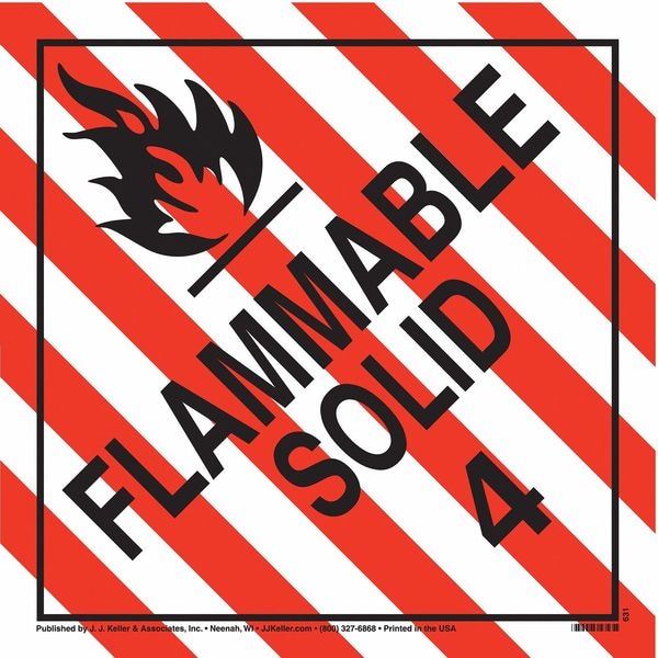 DOT Container Placard, Language English, Container Label/Placard Type Hazardous Class, Hazard Class Class 4 (Flammable Solids), DOT/UN Product Form Placard, Message Flammable Solid, Label Width 10 3/4 in, Label Height 10 3/4 in, Material Tagboard