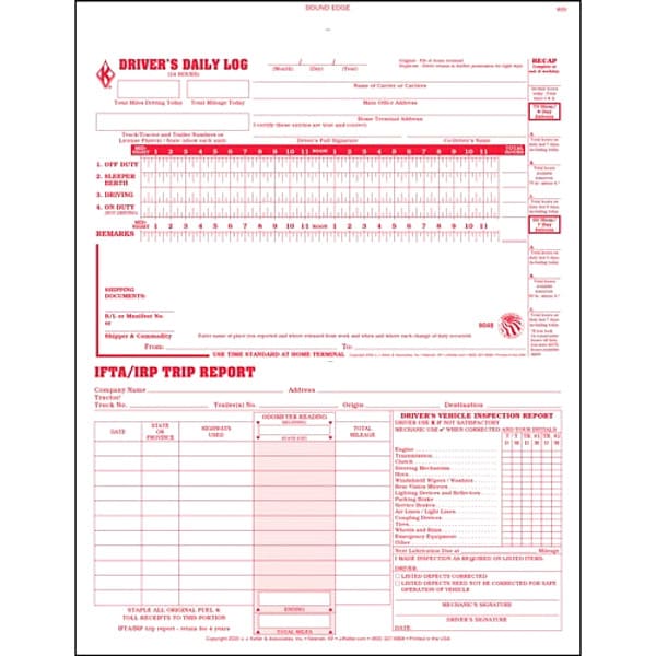 Drivers Daily 3 In 1 Logbook, Includes Carbon Carbonless, Language English, Log Type Driver's Daily 3-in-1 Log Book, Ply Count 2-Ply, Number of Forms 31, Standards IRP/IFTA, Forms Included Daily Log Summary, Detailed DVIR, Format Book, Overall Height 11 in, Overall Width 8 1/2 in