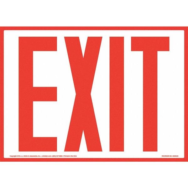 Exit Sign,Red,10" x 7",Vinyl Adhesive