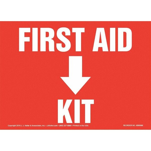 First Aid Kit Sign, 10" x 7", Vinyl, 8001164