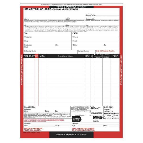 Hazmat Bill of Lading Forms, Hazmat, PK250
