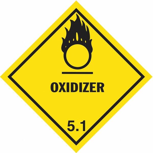 DOT Container Label, Language English, Container Label/Placard Type Hazardous Class, Hazard Class Class 5 (Oxidizing Agents & Organic Peroxides), DOT/UN Product Form Label, Message Oxidizer, Label Width 4 in, Label Height 4 in, Material Paper, Package Quantity 500