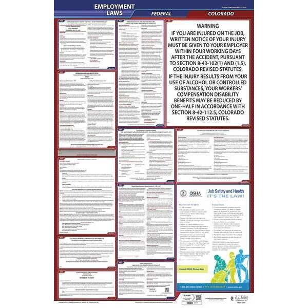 Labor Law Poster, Compliance Type Federal and State Labor Law, FMLA Notice Included Not Applicable, Height 40 in, Language English, Material Plastic, Number of Posters Included 1, Product Type Poster, Subject Matter Federal and State Labor Law, Subscription Length 3 yr, Width 24 in, State/Province CO, Municipality Not Applicable, Workers Compensation Notice Included Not Applicable