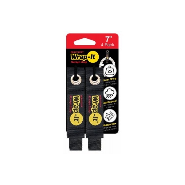 WrapIt, 4 Pack, 7, Heavy Duty Storage Straps, Tough, Made With Heavy Duty Polypropylene, Industrial Strength Hook Loop, Rust Resistant Grommet, Are Built To Last Indoors Or Outdoors, Organize Store Cords, Hoses, Rope So Much More, Dimensions 7L x 1W x 25D Will Hold Up To 25 LB
