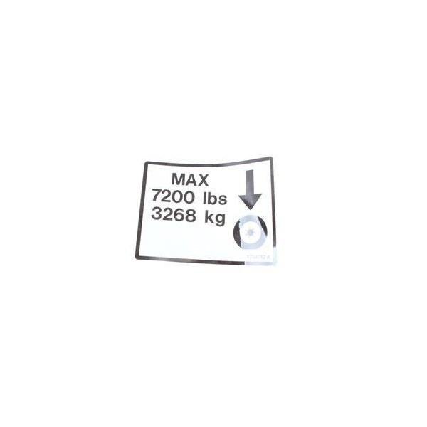 REPLACEMENT DECAL, MAX TIRE LOAD 7200#