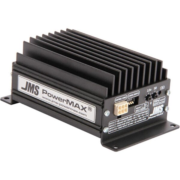Fuel Pump Voltage Booster V2 P2000GM by JMS. Use PowerMAX v2 to quickly and easily increase your stock fuel pumps output! PowerMAX Version 2 upgrades include: New Case Higher Output & More Features! PM-2000 boost & regulates voltage to 14.4v all of the time. Increase the output of ANY fuel pump by up to 85%!! Why replace your fuel pump when you can reliably increase it's output with PowerMAX Each PowerMAX v2 Kit Contains: 44 Amp PowerMAX V2 Voltage Booster Single Plug & Play Wiring Harness Pedal Harness Installation Kit Set of Instructions. Features -Simple installation - PowerMAX plugs directly into your existing fuel pump driver +12V DC feed wire -Compatible with all 12V or 16V battery systems -Designed to be enabled via the Accelerator Pedal Position Sensor Plug & Play -Adjustable Voltage Ramp In / Ramp Out -Choose a Time Ramp or from a monitored 0-5v sensor: Eliminate fuel pressure spikes!! -Green Status LED: Know at a glance what the unit is doing -Blinking LED = Boosting Voltage -Fuelmax V2