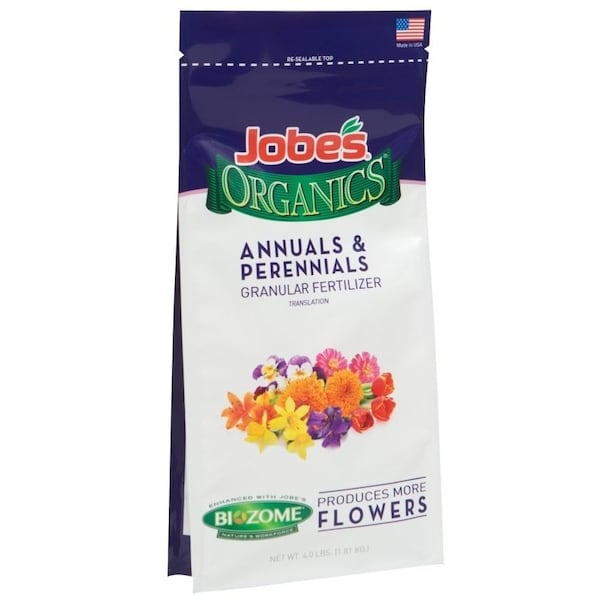 Jobes Organics annual and perennials granular fertilizer with biozome, is specially formulated to provide plants the nutrients they need for beautiful flowers throughout the season