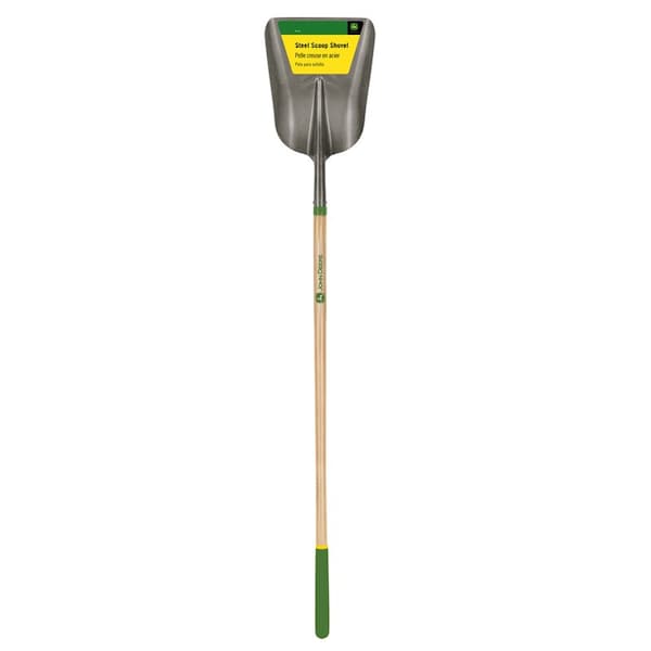 Handle Length: 48, Handle Material: Wood, Handle Type: Long Handle, Blade Length: 16, Maximum Depth: , Blade Material: Steel, Blade Width: 12, Overall Length: 64, Product Type: Shovel, Sub Brand: , Brand Name: John Deere, Coated Blades: Yes, Color: Green