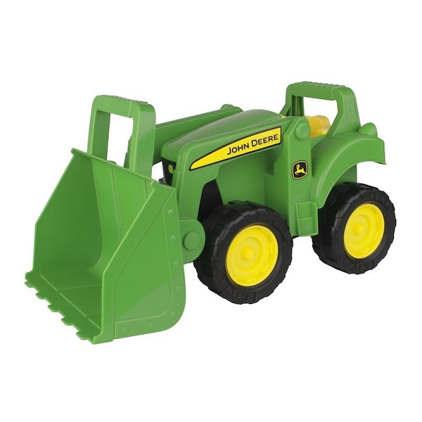Designed for ultra-tough outdoor play and priced right. Constructed of durable plastic, this 15 in tractor with working loader features an easy-to use front bucket with handle, ideal for scooping rock or sand into the 15 in big scoop dump truck. Ages 18 months and up.
