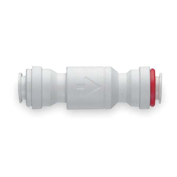Item - Check Valves Check Valve, Flow Design Single, Mechanism and Body Design Inline Spring, Body Material - Valves Acetal Resin Copolymer, Pipe or Tube Size 1/4 in, Connection Type Push x Push, Cracking Pressure 0.3 psi, Mounting Orientation Horizontal, Vertical, Seal Material EPDM, Max. Temp. - Valves 150 Degrees F, Min. Temp. - Valves 33 Degrees F, Max. Water Pressure - Valves 150 psi, Max. Steam Pressure - Valves Not Rated, Seat Material EPDM, Spring Material Stainless Steel