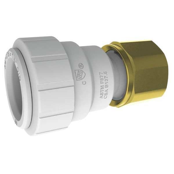 Push-Fit Adapter Fitting, Application Potable Water, Fitting Side A Connection Type Push-to-Connect, Fitting Side B Connection Type FNPS, Fitting Side B Pipe Size 3/4 in, Fitting Side A Tube Outer Diameter 3/4 in, Fitting Material Plastic, Fitting Thread Size 3/4 In., Color White, Includes Pre-Applied Thread Sealant Pre-Applied Thread Sealant Not Included, Maximum Operating Pressure 160 psi, Maximum Operating Temperature 200 Degrees F, Specific Fitting Shape Straight Adapter