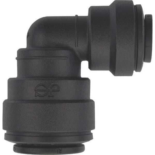Push-Fit Elbow Fitting, Application Food Process, Fitting Side A Connection Type Push-to-Connect, Fitting Side B Connection Type Push-to-Connect, Fitting Side A Tube Outer Diameter 3/8 in, Fitting Side B Tube Outer Diameter 1/4 in, Fitting Material Polypropylene, Color Black, Includes Pre-Applied Thread Sealant Pre-Applied Thread Sealant Not Included, Maximum Operating Pressure 150 psi, Maximum Operating Temperature 150 Degrees F, Specific Fitting Shape 90 Degrees Reducing Elbow