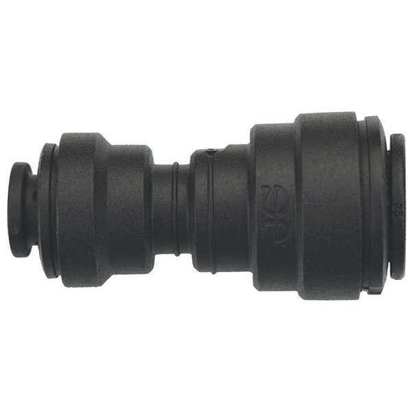 Push-Fit Union Fitting, Application Food Process, Fitting Side A Connection Type Push-to-Connect, Fitting Side B Connection Type Push-to-Connect, Fitting Side A Tube Outer Diameter 3/8 in, Fitting Side B Tube Outer Diameter 1/4 in, Fitting Material Polypropylene, Color Black, Includes Pre-Applied Thread Sealant Pre-Applied Thread Sealant Not Included, Maximum Operating Pressure 150 psi, Maximum Operating Temperature 150 Degrees F, Specific Fitting Shape Straight Reducing Connector