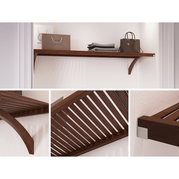 Adding additional shelving to your home is easy with the 6ft Shelf Kit from John Louis Home. Whether its mounted between sidewalls or free-floating, weve taken the guesswork out by including all the hardware you need for installation. Because its made of Solid Wood, it can easily be cut to fit your exact dimensions. Add to your existing organizer or anywhere in the home for decorative and utility shelving.Product Details:-100% Solid Wood -12in. shelf depth-Ventilated for airflow-Cut to fit desired length -Can be installed into side walls or free-floating-Use in closet, pantry, linen, bedroom, laundry & moreWhat's in the Box?-One 6ft. shelf -Two 12in. Angle Brackets.-Four Metal Shelf Mounting L-Clip Brackets-Two Metal Shelf End Brackets-All Required Hardware & Fasteners-Installation Instructions-One Year Manufacturers Limited WarrantySpecification-Shelf Depth: 12in.-Shelf Height: 1.75in.-Shelf Width: 72in.-Slat Depth: 10in.-Slat Width: 1in.-Slat Spacing: .50in.-Rail Depth: 1in.-Rail Height: 1.75in.-Rail Width: 72in.-Product Weight: 14lbs.-Supported Weight: 25lbs per lineal ft.