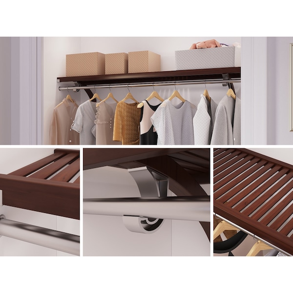 Effortlessly bring shelving and hanging storage to your space with the 6ft. Shelf and Bar kit by John Louis Home. This exquisite cut-to-fit Solid Wood shelf harmoniously complements a brushed nickel garment bar, providing beautiful and versatile storage that shines in just about every room. With all the essential hardware included, its easier than ever to elevate your organization with superior quality.Product Details:-100% Solid Wood -16in. shelf depth-Ventilated for airflow-Includes 100% Metal 6ft Bar Kit-Brushed Nickel Finish-Cut to fit desired length -Can be installed into side walls or free-floating-Use in closet, pantry, linen, bedroom, laundry & moreWhat's in the Box?-One 6ft. shelf -Two 16in. Angle Brackets.-One 6ft. Metal Garment Bar-Two Metal J-Hooks-Two Metal Garment Bar Ends-Four Metal Shelf Mounting L-Clip Brackets-Two Metal Shelf End Brackets-All Required Hardware & Fasteners-Installation Instructions-One Year Manufacturers Limited WarrantySpecification-Shelf Depth: 16in.-Shelf Height: 1.75in.-Shelf Width: 72in.-Slat Depth: 10in.-Slat Width: 1in.-Slat Spacing: .50in.-Rail Depth: 1in.-Rail Height: 1.75in.-Rail Width: 72in.-Product Weight: 10lbs.-Supported Weight: 25lbs per lineal ft.-Garment Bar Kit:-Diameter: 1.25in.-Width: 72in.-Product Weight: 4lbs.