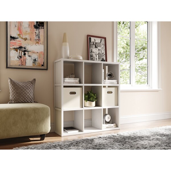 Bring home stylish, versatile storage with this Solid Wood 9 Cube Storage Organizer from John Louis Home. Featuring 9 cube spaces, the open-back design provides ideal cord management for electronics and small lamps. Use as a bookshelf or display plants, pictures, and collectibles. Its the perfect addition to your living room, office, spare room, and more.What's in the Box?-One Solid Wood 9 Cube Organizer assembly required-Assembly instructions-All Required Hardware & Fasteners-One Year Manufactures Limited WarrantyProduct Details-100% Solid Wood -9 fixed 11.5in.W x 11.75in.L, x 12in.H cube spaces-Open back design-Compatible with all John Louis Home storage bins -Decorative wainscot side panels-Multiple uses in office, living room, bedrooms, playrooms, dens, and more-Stackable -Includes all required hardware-Includes safety wall attachment hardware-Easy assembly with included step-by-step instructionsSpecification-Assembled Dims: 37.75in.W x 11.75in.L x 40.25in.H-Cube Dims: 11.5in.W x 11.75in.L x 12in.H-Product Weight: 40 lbs.