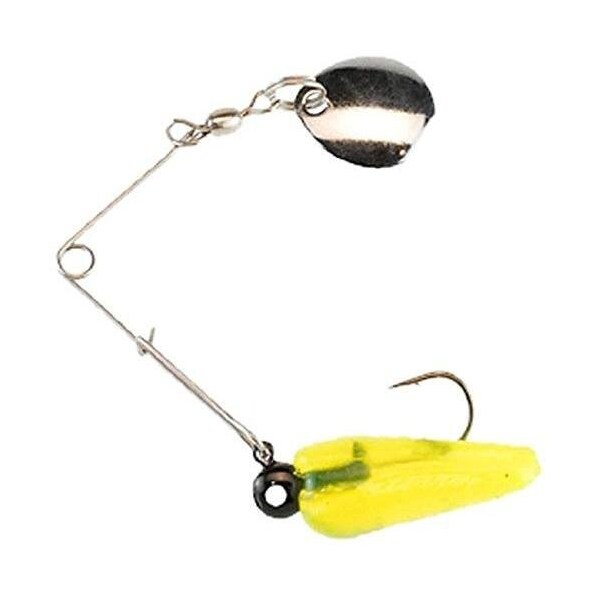 The genuine authentic beetle spin is simple and easy to use for the novice or avid angler The bright, matching safetypin spinner is easy to remove when you want a plain jig for deepwater presentations Featured translucent polycarbonate jig head, steel shot adds weight for better jigging and louder and harder rattle calls in fish from farther away Available in fluorescent chartreuse color with nickel blade Measures 1inch length Johnson BSVP132FC Beetle Spin Jig 1, 132oz, Fluorescent Chartreuse Nickel Blade, 4Pack