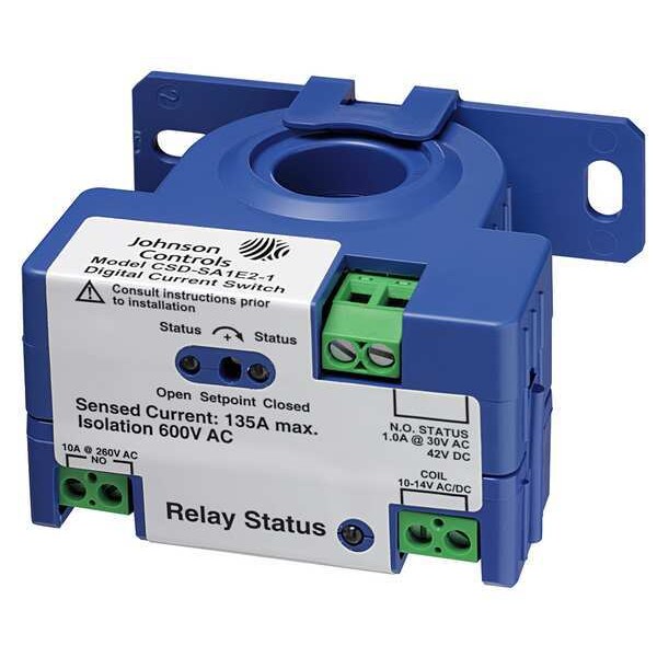 Adjustable Current Sensing Relay, Contact Form 1NO, Core Type Solid, Input Voltage 12VAC/DC, Trip Point Adjustable 1.00 to 135.00A, Electrical Connection Terminal Strip, Status Indicator LED