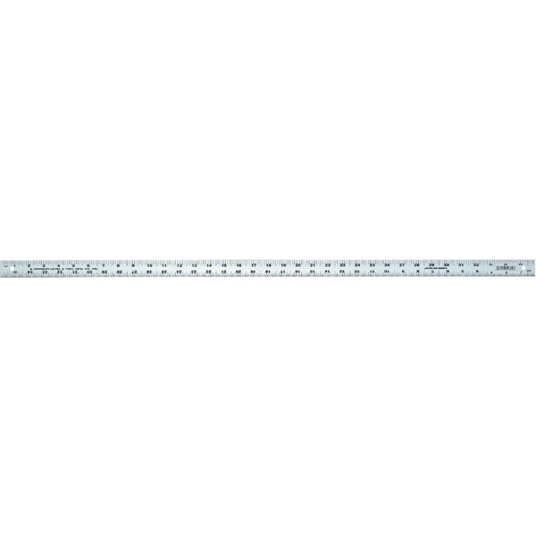 Durable 1-1/8 In. (inch) wide extruded aluminum rule. Screened thermal-bonded black graduations in 1/8 In. and 1/16 In. Bold easy-to-read graduations and numbers. Clear protective anodized finish.