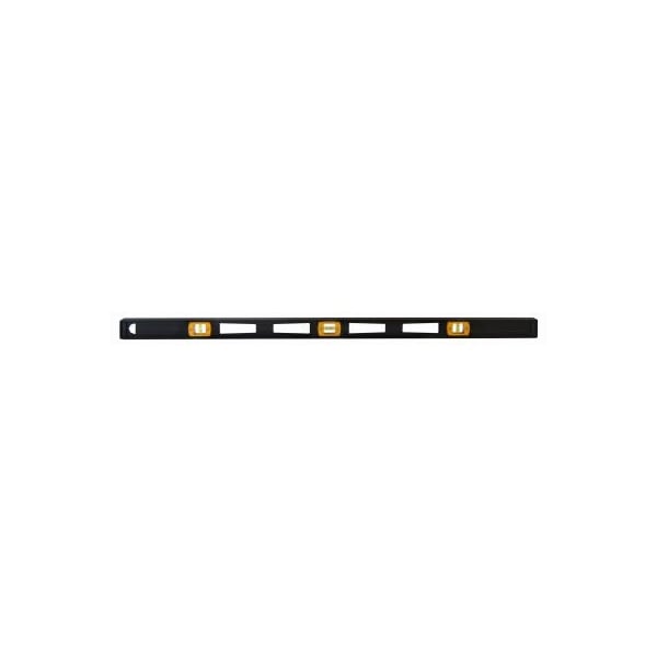 48 Contractor Machined Top Reading Aluminum Level, 3 Vial, Extruded Aluminum IBeam With Black Anodized Finish, Precision Machined Leveling Edges, Large, Magnified Top Read Window, 360 Degree Acrylic Yellow Barrel Vials, Screw On, High Impact Resistant Plastic Covers With Protective Lenses, Shock Protecting End Caps, Frame Dimensions 1 x 214