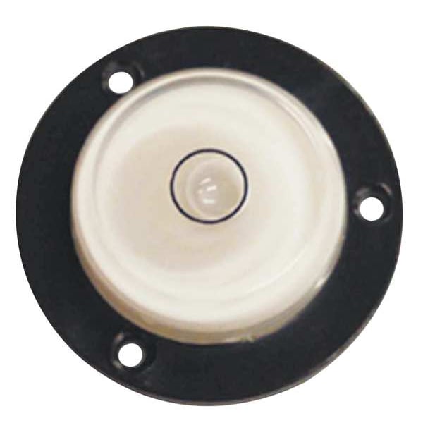 Bulls Eye Level, Overall Height 1/2 in, Overall Length 1 3/16 in, Accuracy 30 Arc Min, Frame Material Plastic, Level Shape Circular with Flange, Mount Type Mounting Hole, Mounting Hole Diameter 1/8 in, Number of Centering Circles 1, Number of Mounting Holes 3, Overall Diameter 1 3/16 in, Vial Material Acrylic, Color Black, Package Quantity 10