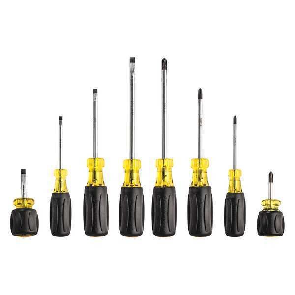 Screwdriver Set, #1, #2, #3, 1/4 in, 3/16 in, 5/16 in, Number of Pieces 8, ESD Safe No, Includes #2 x 1-1/2 in, #2 x 4 in, #3 x 6 in, 1/4 in x 1-1/2 in, 1/4 in x 4 in, 5/16 in x 6 in, Keystone Slotted 3/16 in x 3 in, Phillips #1 x 3 in, ASME, ANSI