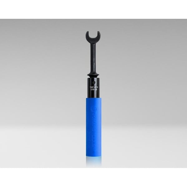 Designed for 7/16" F Connectors and 11 mm nuts and bolts, this full-size open head torque wrench provides a perfectly calibrated amount of torque to prevent damage from over-tightening or signal loss from under-tightening. This torque wrench features the following: Provides a tighter fit when used on 7/16" F Connectors and 11 mm nuts and bolts Ergonomically designed with an angled head and cushion grip for maximum leverage and comfort Calibrated to 30 in-lb (3.89 N-m) to consistently meet most manufacturers' recommended torque requirements for their F Connectors Audible click lets you know when the connector is fully torqued to 30 in-lb Made of High Carbon Steel with a Black Oxide finish for maximum durability