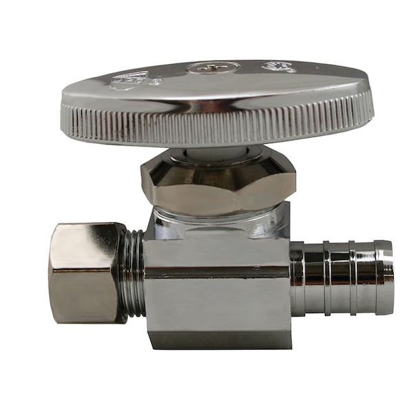 1/2" PEX x 3/8" OD Chrome Plated Quarter Turn Supply Stop, Straight