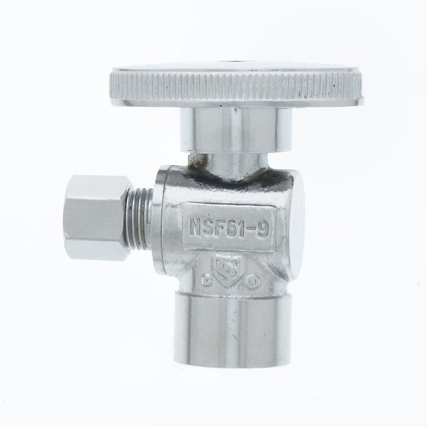 1/2" SWT x 1/4" OD Chrome Plated Quarter Turn Supply Stop, Angle