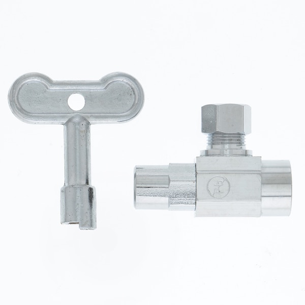1/2" SWT x 3/8" OD Chrome Plated Quarter Turn Supply Stop, Angle with Loose Key