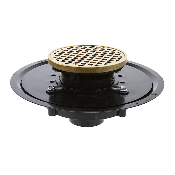 2in Heavy Duty ABS Drain Base with 3-1/2in Plastic Spud and 5in Polished Brass Strainer with Ring