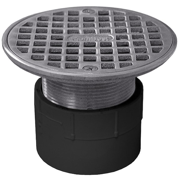 2in. PVC Over Pipe Fit Drain Base with 2in. Metal Spud and 6in. Chrome Plated Strainer