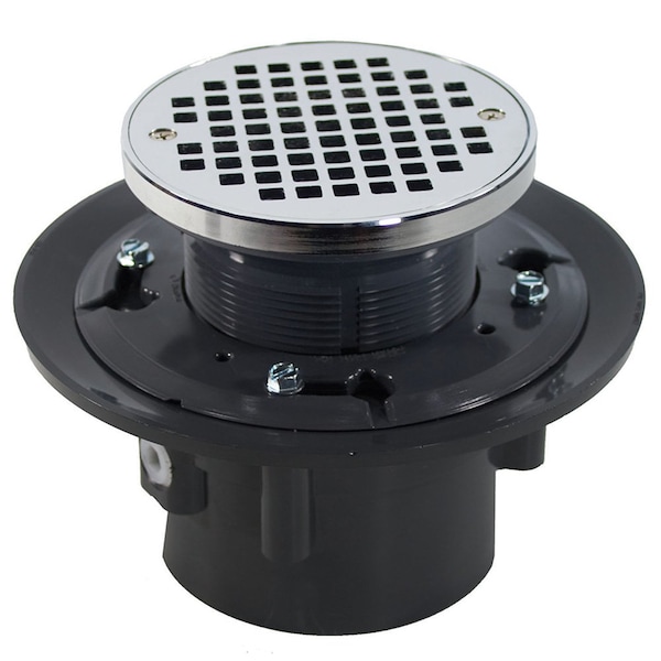 2inX3in Heavy Duty PVC Drain Base, 3-1/2in Plastic Spud, 5in Chrome Plated Strainer, Ring